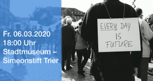 Freundinnen und Freunde, Weggefährten und Interessierte lädt die Trierer Arbeitsgemeinschaft Frieden e.V. am Freitag, 06.03.2020, ins Stadtmuseum ein. Anlass ist das 40. Jahre-Jubiläum der Friedensorganisation. Unter dem Motto „Global denken – lokal handeln“ traten 1978 ein Dutzend Frauen und Männer um Klaus Jensen an, um „Frieden“ in Trier zum Thema zu machen. Ein Jahr später wurde die Arbeitsgemeinschaft Frieden e.V. …
